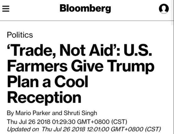 這個(gè)廣告片的名字叫“要貿(mào)易,不要補(bǔ)助”——即美國(guó)農(nóng)民不想要特朗普政府給他們的120億美元的補(bǔ)貼,他們想要的是恢復(fù)和中國(guó)等其他國(guó)家的貿(mào)易與市場(chǎng)。