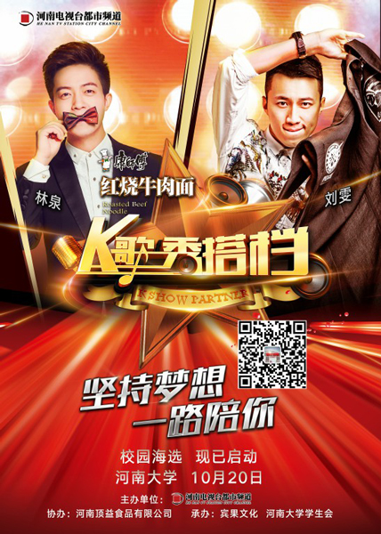 現(xiàn)在,給你機(jī)會show出自己!10月20日,由都市頻道和康師傅紅燒牛肉面聯(lián)合推出的《名嘴K歌秀》校園海選活動(dòng)將在河南大學(xué)啟動(dòng)并進(jìn)行首場選拔,在接下來的兩個(gè)月時(shí)間里,該活動(dòng)將走進(jìn)省內(nèi)六大高校,尋找最會唱歌的你。最終,本次活動(dòng)選拔出的優(yōu)秀選手可以和河南廣電全媒體的主持人搭檔演出,參與名嘴演唱會,登上更大更炫的舞臺,實(shí)現(xiàn)人生的音樂夢想!