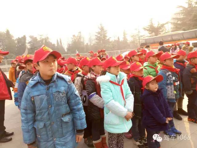 脖子上戴著紅領(lǐng)巾,頭上頂著小紅帽,排著整齊的隊伍——出發(fā)!