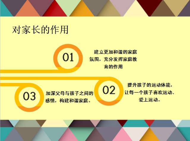 “趣味親子運(yùn)動(dòng)趴”根據(jù)孩子年齡不同設(shè)置指標(biāo),由家長(zhǎng)和孩子共同參與、相互協(xié)作完成,是一次從耐力到動(dòng)手能力、反應(yīng)力到創(chuàng)造力,速度與平衡全面考量的一系列親子活動(dòng),從“歡樂(lè)親子跑”到“趣味體能大沖關(guān)”,不但提高幼兒的活動(dòng)技能,開(kāi)拓孩子們的視野,增加孩子們的探索精神,增強(qiáng)少年兒童的身體素質(zhì)的,又寓教于樂(lè),有利于孩子們身心健康成長(zhǎng),同時(shí)讓家長(zhǎng)們也了解正確而有趣的運(yùn)動(dòng)方式,更好的增進(jìn)父母與孩子間感情。