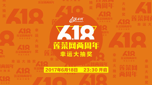 蓮菜網(wǎng)兩周年幸運(yùn)大抽獎(jiǎng),將于今晚23:30開始,敬請(qǐng)關(guān)注。