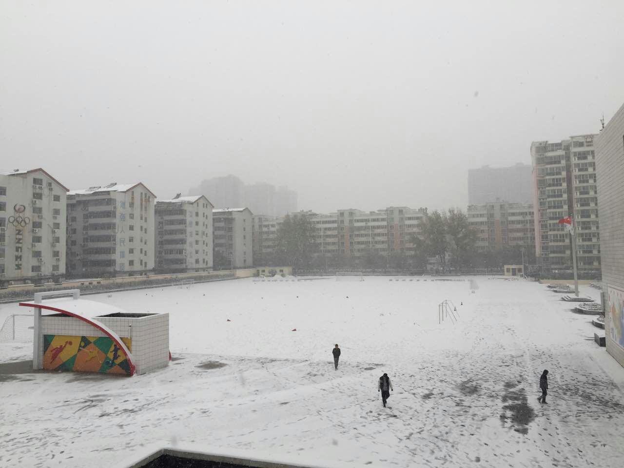 今天是二十四中的小雪,鄭州也迎來了降雪,一瞬間,鄭州便被銀裝素裹了起來。據(jù)了解,此次降雪預計于今晚后半夜停止。明天白天鄭州陰天轉多云。