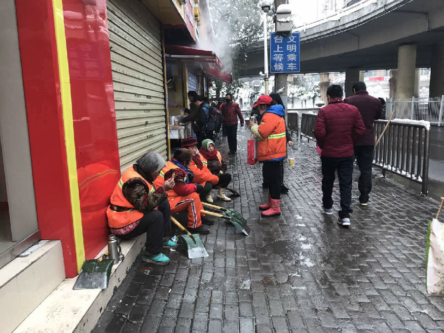 醫(yī)學(xué)院附近下班的環(huán)衛(wèi)工人。你們辛苦了!