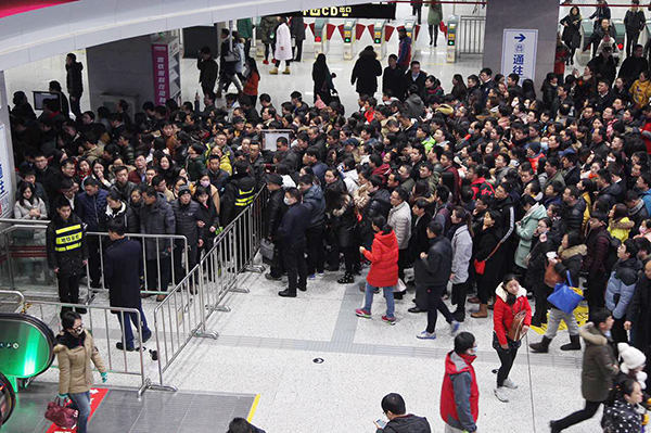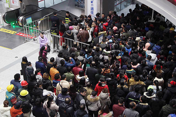 受雨雪天氣影響,鄭州軌道交通1、2號線進(jìn)出站客流激增。