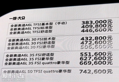 【全新奧迪A6L價格發(fā)布】