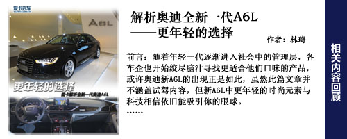 編輯點評:新一代奧迪A6L外觀更加年輕,目標用戶群會進一步下探,而A6L更大的改變在與內(nèi)飾上,更寬敞的空間,更豪華的內(nèi)飾,更加具有科技含量的電子配置。動力總成和四驅系統(tǒng)上變化較少,好在奧迪A6L的用戶群對此并不十分關心。頂著“第一官車”的光環(huán),有政府采購做保障,奧迪A6L并不愁銷路,不過奧迪希望能逐步降低對公務市場的依賴,以降低采購政策改變所帶來的風險。