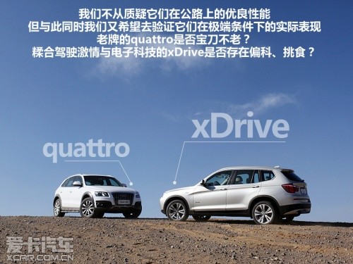 我們不從質(zhì)疑它們在公路性能上的優(yōu)良表現(xiàn),但與此同時我們又很希望去驗證它們在極端條件下的實際表現(xiàn),于是,在本期的四驅(qū)測試中,我們挑選了目前市場上最具代表性的兩款車,在荒蕪的沙地上來一次爬坡測試。到底看看在公路上“生龍活虎”的渦輪增壓發(fā)動機在越野路況下的實際表現(xiàn)到底如何?