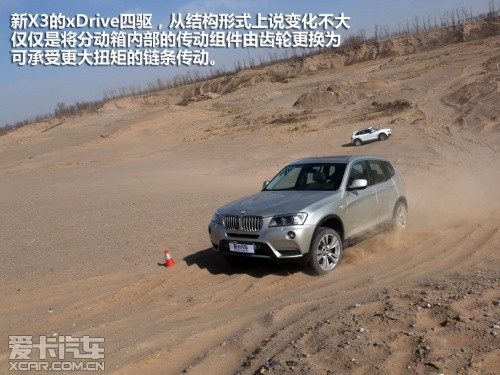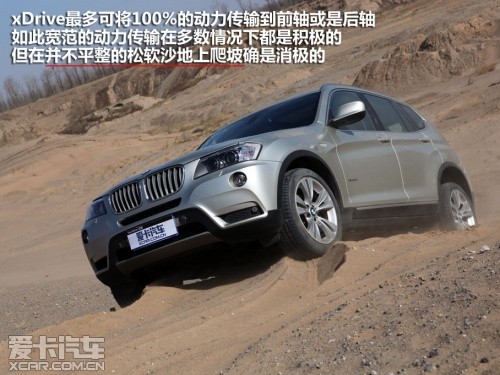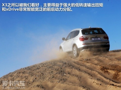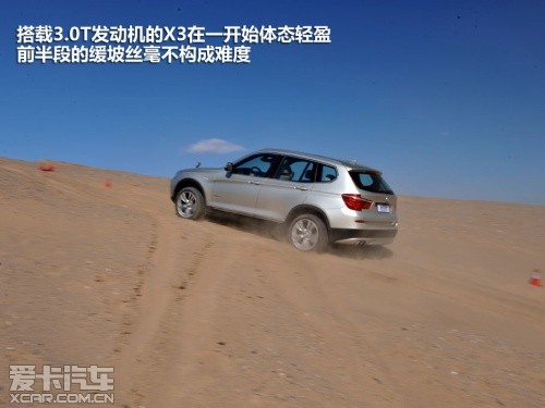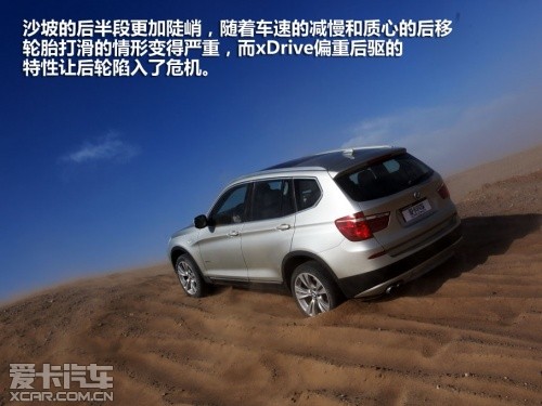 或許是奧迪Q5完成測試的過程比較順利,我們對接下來即將登場的寶馬X3也普遍比較看好,這或許就是思維慣性帶來的固定套路吧。然而在實地測試過程中,這臺X3攀爬沙丘的過程卻沒有表現(xiàn)出它在公路上所煥發(fā)出的霸氣。400牛·米的最大扭矩在城市道路中,甚至在高速公路上都是無與倫比的,但移步至眼前狂風(fēng)大作的沙丘,這400牛·米的扭矩則像是心有余而力不足的悲情英雄。
