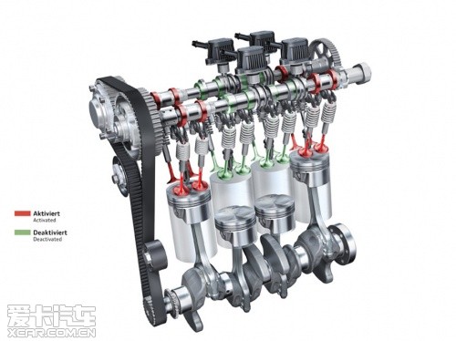 幫助奧迪在原有動力基礎上降低油耗的,主要包括發(fā)動機啟停技術、能量回收技術以及全新的全車智能熱管理。除此之外還加入一項行駛中“閉缸”技術:此技術應用在大眾集團全新代號為EA888的直列4缸TFSI發(fā)動機之上, 當發(fā)動機正常運轉時,只要電控系統(tǒng)監(jiān)測到此時行駛狀態(tài)均勻且需求動力非常低的情況下,就會主動關閉中間兩個氣缸。具體的做法是通過改變凸輪軸的位置,使正時氣門停止打開,保持關閉狀態(tài)?;钊匀辉诟變韧鶑瓦\動,但不進行進排氣和點火。通過電腦做到高度的精確同步后,達到減少油耗與排放的效果。由于此項技術剛剛推出,筆者也僅僅接觸到了1:1等比例模型,具體的技術細節(jié)、運行模式與實際效果將在日后的試駕中向大家展示。