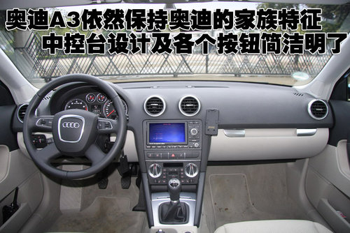 奧迪A3依然保持奧迪的家族特征,中控臺設(shè)計及各個按鈕簡潔明了。其四輻式真皮方向盤配備集成控制按鈕,而白色冷光儀表盤突出視覺效果的同時,又方便駕駛員讀取信息。