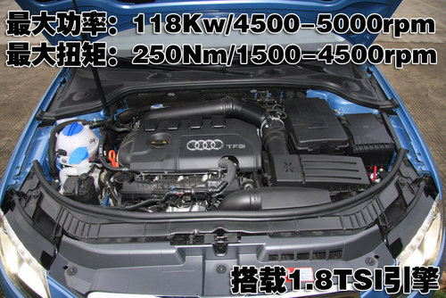1.8升TFSI發(fā)動機(jī)在4,500轉(zhuǎn)/分至6,200轉(zhuǎn)/分可輸出最大功率118千瓦,在1,500轉(zhuǎn)/分至4,500轉(zhuǎn)/分可輸出250牛·米的最大扭矩。這款發(fā)動機(jī)匹配6擋手動變速箱或7速S tronic變速箱,其動力表現(xiàn)完全超越了同排量級別的自然吸氣式6缸汽油機(jī)型,以匹配7速S tronic的A3 Sportback車型為例,其0到100公里/小時加速成績僅為7.7秒,最高車速可達(dá)222公里/小時。