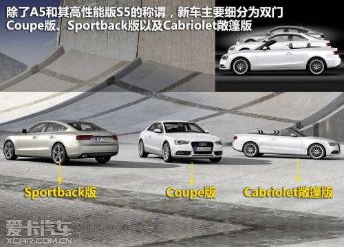 車型方面,2012款車型除了A5和其高性能版S5的稱謂,新車主要細(xì)分為雙門Coupe版、Sportback版以及Cabriolet敞篷版。據(jù)悉,此次國(guó)內(nèi)曝光的測(cè)試車輛是雙門Coupe版。