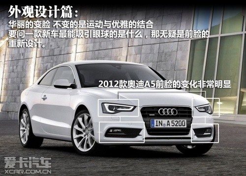 2012款?yuàn)W迪A5屬于中期改款車型,在外觀、內(nèi)飾、動(dòng)力和底盤上都有較為明顯的變化。依據(jù)之前的消息,新款車型將于今年9月在海外開始接受預(yù)定。近日,2012款?yuàn)W迪A5在國(guó)內(nèi)的測(cè)試諜照也被首次曝光,預(yù)計(jì)新車不久就將引入國(guó)內(nèi)市場(chǎng)。(諜照來源:騰訊汽車)