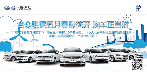 在這個春暖花開的季節(jié),感受春天帶來好心情的同時,一汽-大眾合眾明德全系車型優(yōu)惠繼續(xù)。讓我們陪您共同度過一個美好的五月!