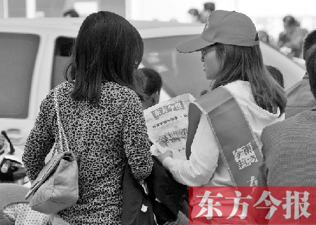 “您好!我們是愛心志愿者,正在為兩位癌癥患者義賣,買一份報紙吧?!?月13日上午,在曼哈頓廣場、紫荊山百貨外廣場、二七萬達(dá)廣場、升龍國際廣場、如意湖畔、CBD會展中心等處,志愿者為了愛重復(fù)著相同的話。