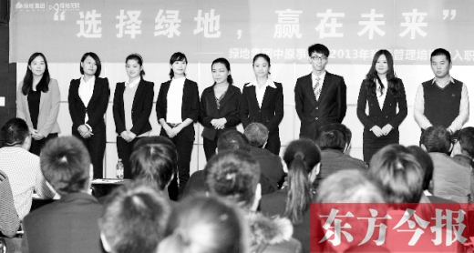 綠地集團中原事業(yè)部行政人事部經(jīng)理許詠琪說,招募管培生是集團人才發(fā)展戰(zhàn)略的重要組成部分,因此對人才選拔要求的嚴格程度,超乎尋常。