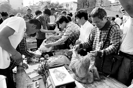 在現(xiàn)場,管城區(qū)商務(wù)局的工作人員忙個不停。該局工會主席李國占說,不到6點(diǎn)半,就有很多市民提著籃子來買菜,7點(diǎn)鐘開始賣菜時,已經(jīng)有200多人在排隊(duì)。