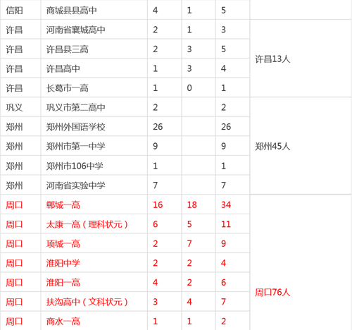 河南各市縣2015高考清華、北大錄取明細