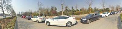 昨天下午,鄭大校門外的路邊,停放的車輛一眼望不到頭。