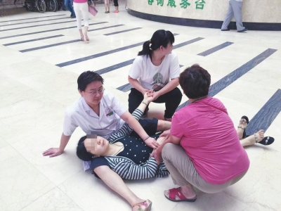 本報(bào)周口訊6月18日一早,市民孫女士在婆婆的攙扶下前去周口市中心醫(yī)院準(zhǔn)備就診。由于未到上班時(shí)間,正在候診的孫女士突然下身出血暈倒。提前到崗的門診值班醫(yī)生張玉玲恰巧看到這一幕,立即坐在地上用大腿當(dāng)“病床”墊起孫女士的頭部,并采取急救措施,最終使孫女士脫離了生命危險(xiǎn)。