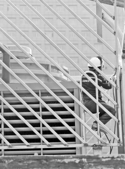 高溫之下,工人師傅正在進站口處抓緊施工。