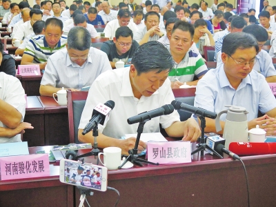 在昨天的約談會上,羅山縣委書記許遠(yuǎn)福顯得異常醒目,他是此次約談會中,唯一一名作為約談代表發(fā)言的地方政府負(fù)責(zé)人,并進(jìn)行表態(tài)性發(fā)言。