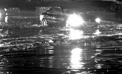 京廣路與隴海路交叉口西北角積水較嚴(yán)重記者吳國(guó)強(qiáng)攝影