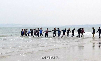 6.18名大學(xué)生手挽手海中救人