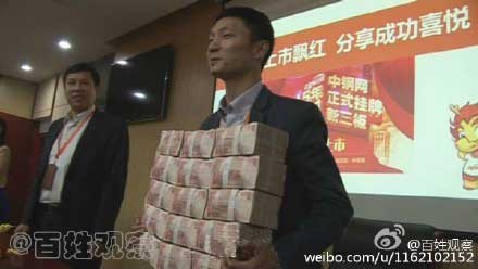 昨天,鄭州某電商公司召開員工“分紅”大會(huì)。老板現(xiàn)場(chǎng)拿出1400萬(wàn)現(xiàn)金,用來獎(jiǎng)勵(lì)業(yè)績(jī)突出的員工。據(jù)說,一捆錢是人民幣10萬(wàn),當(dāng)天不少員工都帶著麻袋到現(xiàn)場(chǎng)領(lǐng)錢?。。。?!小編已經(jīng)不知道該說什么,弱弱的問一句,貴公司還招人嗎?