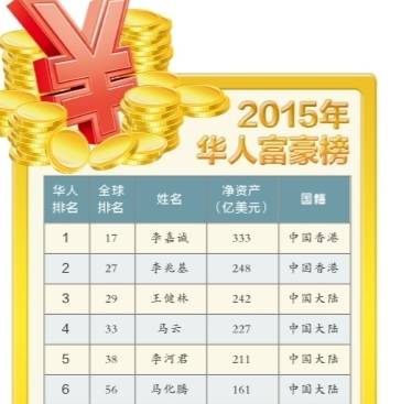 昨日《福布斯》雜志中文版發(fā)布2015華人富豪榜。李嘉誠以凈資產(chǎn)規(guī)模333億美元再次蟬聯(lián)第一;李兆基第二;王健林第三,凈資產(chǎn)達(dá)242億美元,雄霸內(nèi)地首富。河南共有4位企業(yè)家上榜,天瑞集團(tuán)董事長李留法以凈資產(chǎn)規(guī)模21億美元領(lǐng)跑。