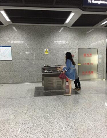 10、有人在武漢地鐵飲水機上洗腳