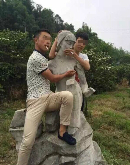 四川宜賓趙場佛現(xiàn)山景區(qū)花開正艷,卻出現(xiàn)了與美景相悖的不文明行為。兩男子近日對一婦女雕像又是摟抱又是摸胸。據(jù)了解,雕像是兩年前計生文化進景區(qū)時設(shè)置的。目前,拍攝時間和兩男子身份尚不明確??达L景還是煞風景?