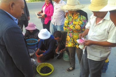 現(xiàn)場收購盜采者采摘來的黑枸杞。