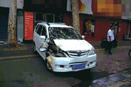 6、鄭州面包車進貨被卡坑內(nèi) 司機錯踩油門沖向人行道
