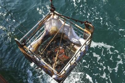 周春水說,目前考古工作還沒有正式進入文物大規(guī)模提取階段,出水文物都是在抽沙過程中從泥沙中剝離出來的,并且為了保護沉船船體結(jié)構(gòu),考古隊并未對散落在海水中的大塊船體甲片進行撈取,這些需要等到將來船體打撈工作計劃出臺后,再著手進行。