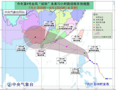 因?yàn)椤澳萱А钡牡絹恚醒霘庀笈_(tái)也于7月31日18時(shí)發(fā)布臺(tái)風(fēng)橙色預(yù)警,在此之前,來自中國氣象局應(yīng)急辦消息,中國氣象局7月31日10時(shí)啟動(dòng)重大氣象災(zāi)害(臺(tái)風(fēng))三級應(yīng)急響應(yīng)。