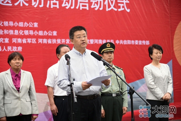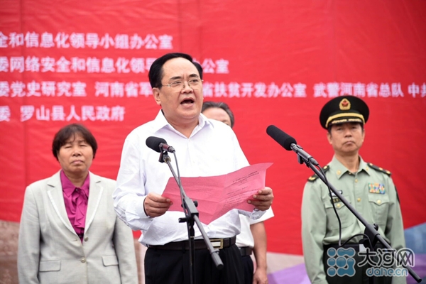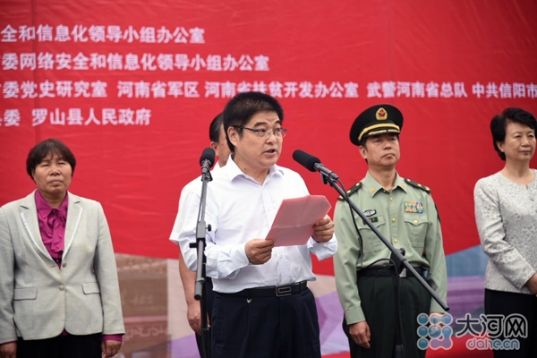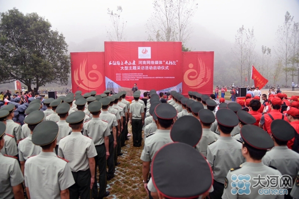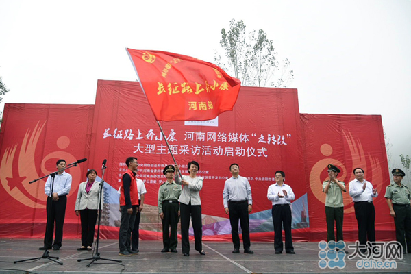 大河網(wǎng)訊(河南日報記者 胡巨成 大河網(wǎng)記者 宋向樂 范昭 通訊員劉宏冰)9月26日,按照中央網(wǎng)信辦統(tǒng)一部署,“長征路上奔小康”河南網(wǎng)絡(luò)媒體“走轉(zhuǎn)改”主題采訪活動在紅25軍長征出發(fā)地——羅山縣何家沖啟動。省委常委、宣傳部長趙素萍出席啟動儀式為采訪團(tuán)授旗,并勉勵大家多走多看,發(fā)揚(yáng)長征精神,講好長征故事,將精彩報道奉獻(xiàn)給廣大網(wǎng)友。中央網(wǎng)信辦網(wǎng)絡(luò)新聞信息傳播局副局長劉沖出席啟動儀式并講話,省委宣傳部副部長、省委網(wǎng)信辦主任何彧致辭,省軍區(qū)副政委兼政治部主任冷志義等出席啟動儀式。
