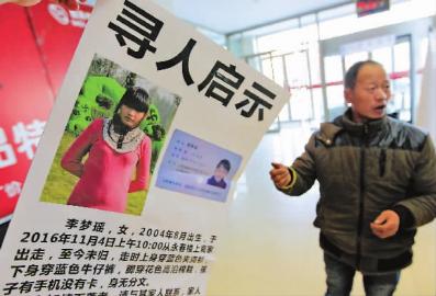 李先生說,女兒叫李夢(mèng)瑤,出走時(shí)上身穿藍(lán)色夾克衫,下身穿藍(lán)色牛仔褲,腳上穿的是雙花色高沿棉鞋。