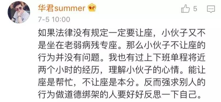 然而大多數(shù)網(wǎng)友都支持小伙的做法,上班族也很累,年輕人也有體力透支的時候,不應(yīng)把“讓座”當(dāng)成一種道德綁架。