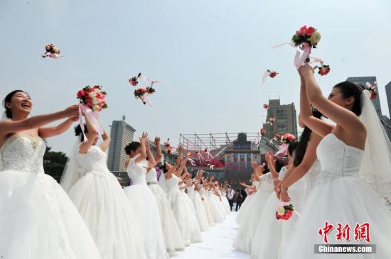 5月28日,東北大學2017校友集體婚禮在東北大學校園隆重舉行。來自海內外的45對校友新人回到母校,在母校師生的見證下完成了人生最重要的儀式。 中新社記者 于海洋 攝