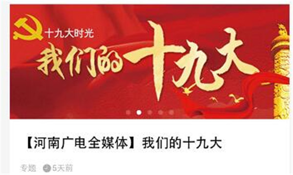 黨的十九大開幕以來,河南廣播電視臺按照中宣部的統(tǒng)一部署,精心策劃,全媒聯(lián)動,推出了特色系列報道——“我們的十九大”,把鏡頭對準百姓,把版面留給基層,會上會下、場內(nèi)場外一起同頻共振十九大,傳達了河南人民對“十九大時光”的熱切期盼。