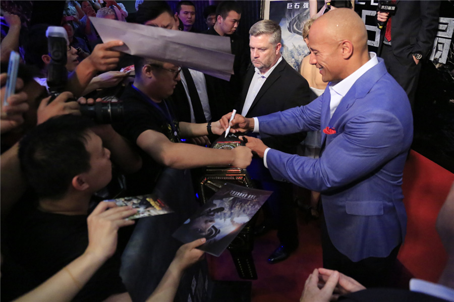 《末日崩塌》中國首映紅毯 巨石強森與粉絲嗨爆全場