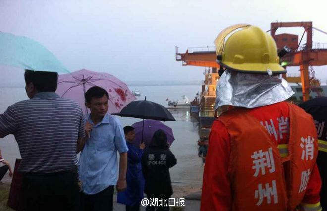 6月2日,消防救援人員在事發(fā)現(xiàn)場。 6月1日晚,一艘從南京駛往重慶的客船“東方之星”輪在長江中游湖北監(jiān)利水域突遇龍卷風(fēng)發(fā)生翻沉。事發(fā)客船共有458人,其中旅客406人。圖為目前客船已沉入江中,呈倒扣狀,給救援工作造成極大困難。(楊宏斌、王馨、田悅)圖片來源:《湖北日報》官方微博