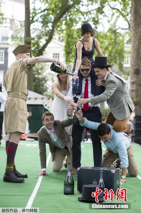 當(dāng)?shù)貢r(shí)間2015年7月11日,英國(guó)倫敦,貝德福德廣場(chǎng)花園舉辦一年一度的“紳士運(yùn)動(dòng)會(huì)”。這是一個(gè)不以打破記錄為榮,而專為紳士打扮裝帥??岫O(shè)的趣味運(yùn)動(dòng)會(huì),比賽項(xiàng)目包括“雨傘騎(車(chē))斗”、“燙衣板沖浪”、“背人賽跑”等,現(xiàn)場(chǎng)參加者不一定會(huì)出汗出力,但一定要打扮成傳統(tǒng)紳士淑女風(fēng)格,而叼煙、小酌一杯的鏡頭更讓人覺(jué)得這是一場(chǎng)嘉年華。