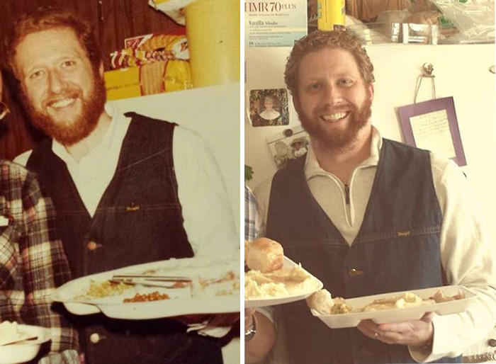 左邊是1978年的老爹,右邊是2013年的我