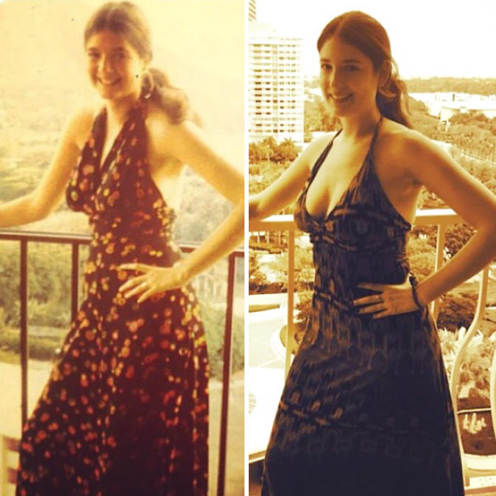 我和我老媽,同樣的年紀,同一件裙子,時隔25年