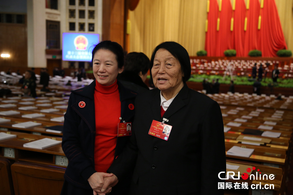 女人大代表代表申紀(jì)蘭出席全國人代會(huì)(右) 攝影:鄧晨曦