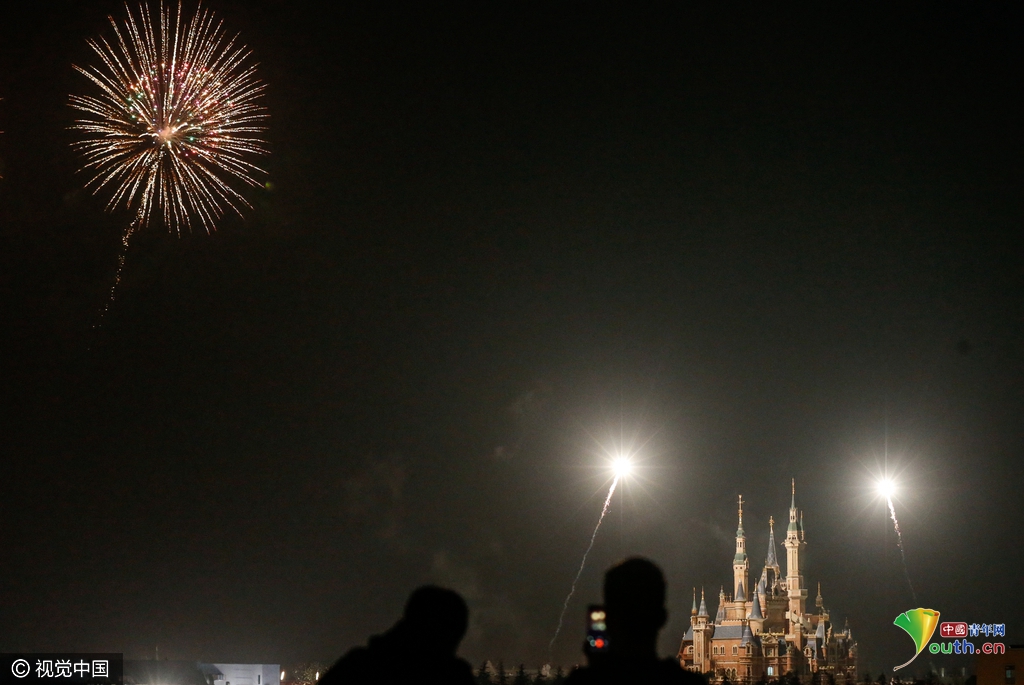 2016年3月28日晚,上海迪士尼樂園進行了第一次煙花試放。晚上9時許,兩道明亮的煙火在人們的歡呼中劃破天際。在隨后的27分鐘內,10余組姿態(tài)各異的煙火在空中依次綻放,萬千煙花“噴薄”而出,迪士尼城堡在煙火的照射下清晰可見。
