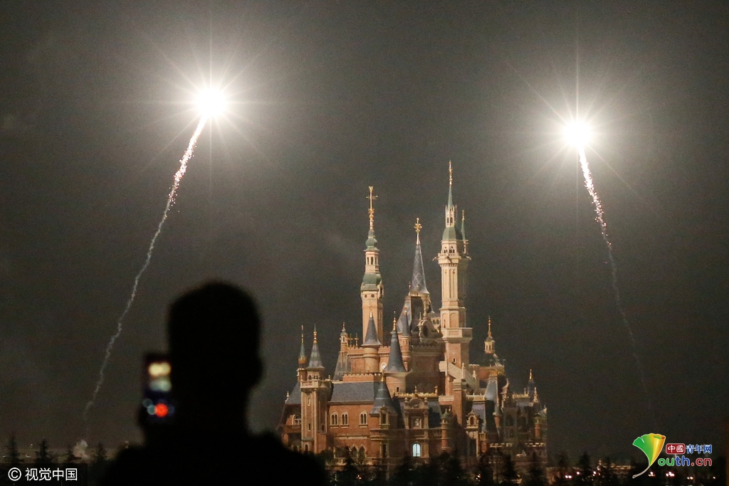 3月28日9點06分,在上海迪士尼樂度假區(qū)內中心位置,“奇幻童話城堡”上空及周圍十幾支煙花直指天空,一粒粒金砂噴射而出,在空中綻放,原本漆黑一片的園區(qū)在焰火的襯托下顯得絢麗多彩。每組焰火間隔時間為3-4分鐘。