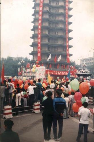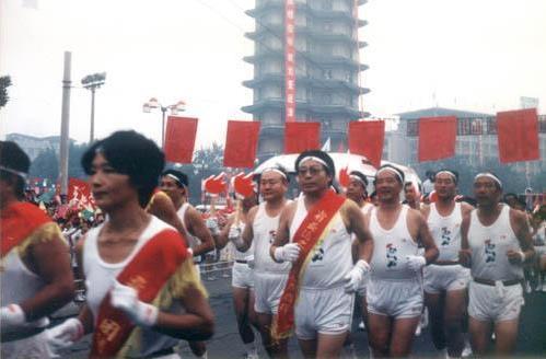 火炬從二七廣場開始傳遞?!袄顚帯边\動服、“健力寶”飲料、熊貓“盼盼”成為當(dāng)時的大亮點。(攝影 | 尹人)